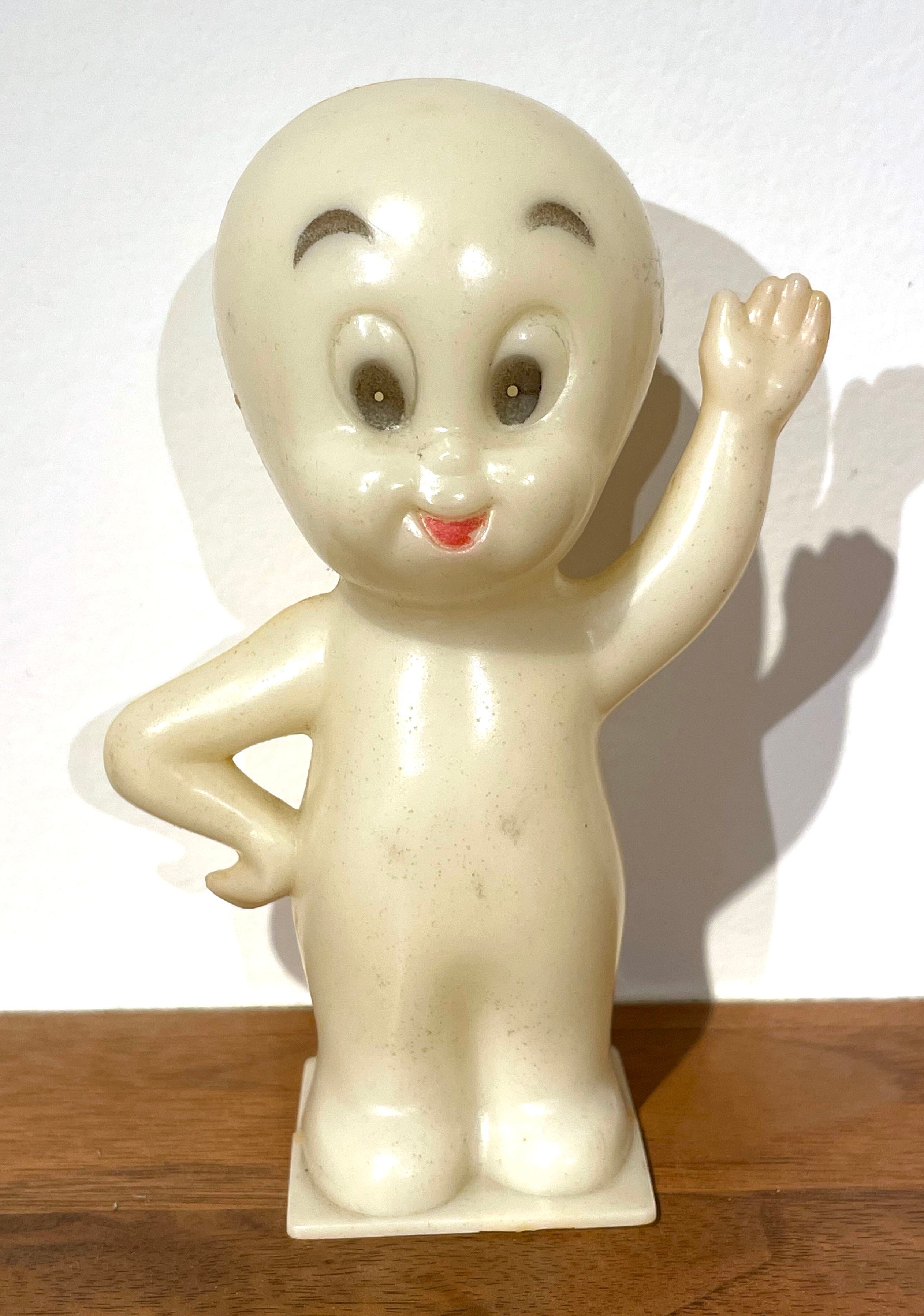 キャスパーのプラスチック製フィギュアです。夜光なので暗いところで光ります。高さ約13センチ。接着剤などがだいぶ経年劣化しています。