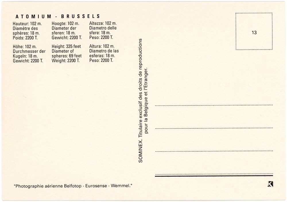 古いAtomiumの未使用ポストカードです。サイズは幅104ミリx高さ148ミリ程度。