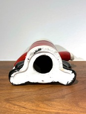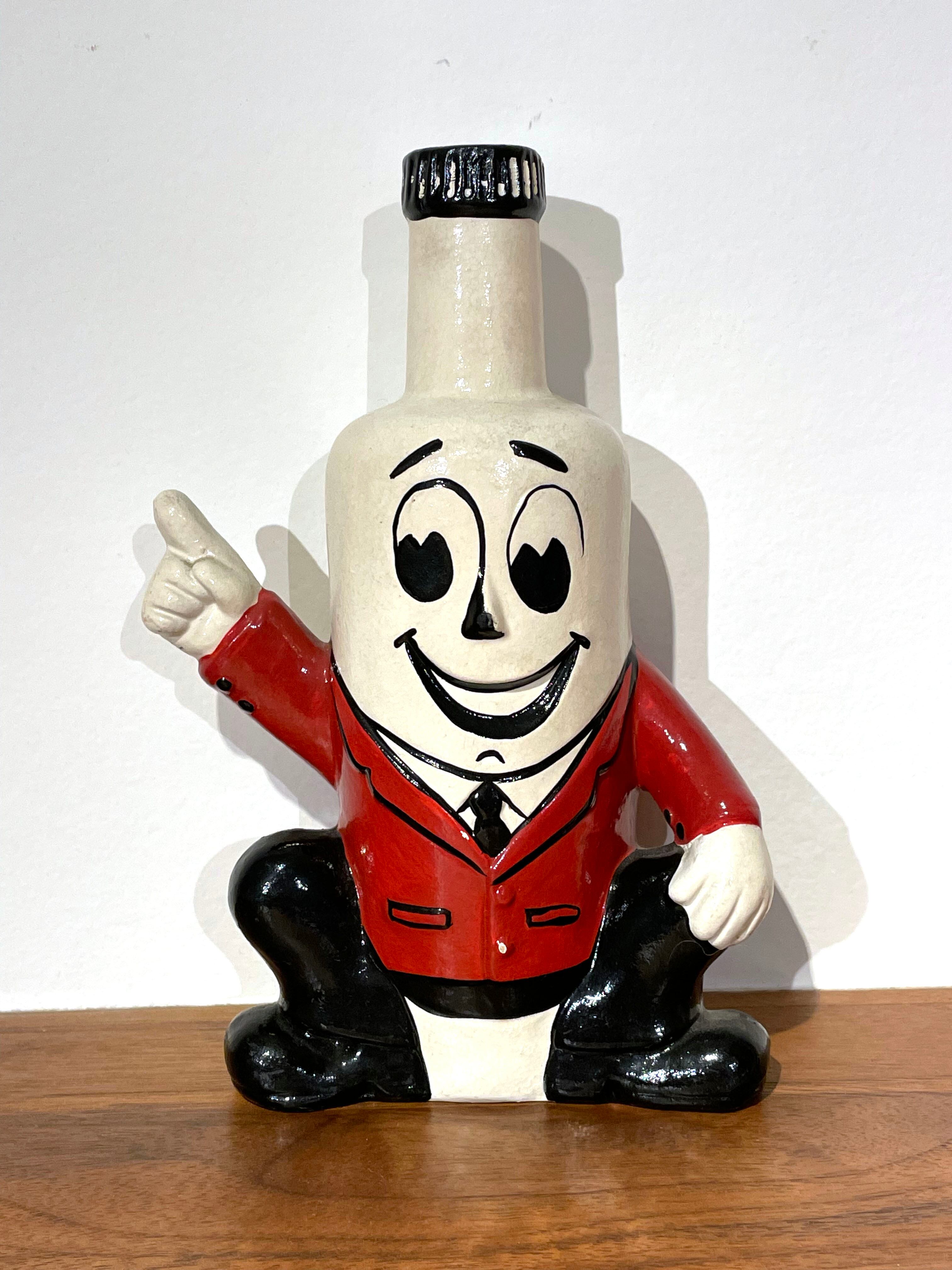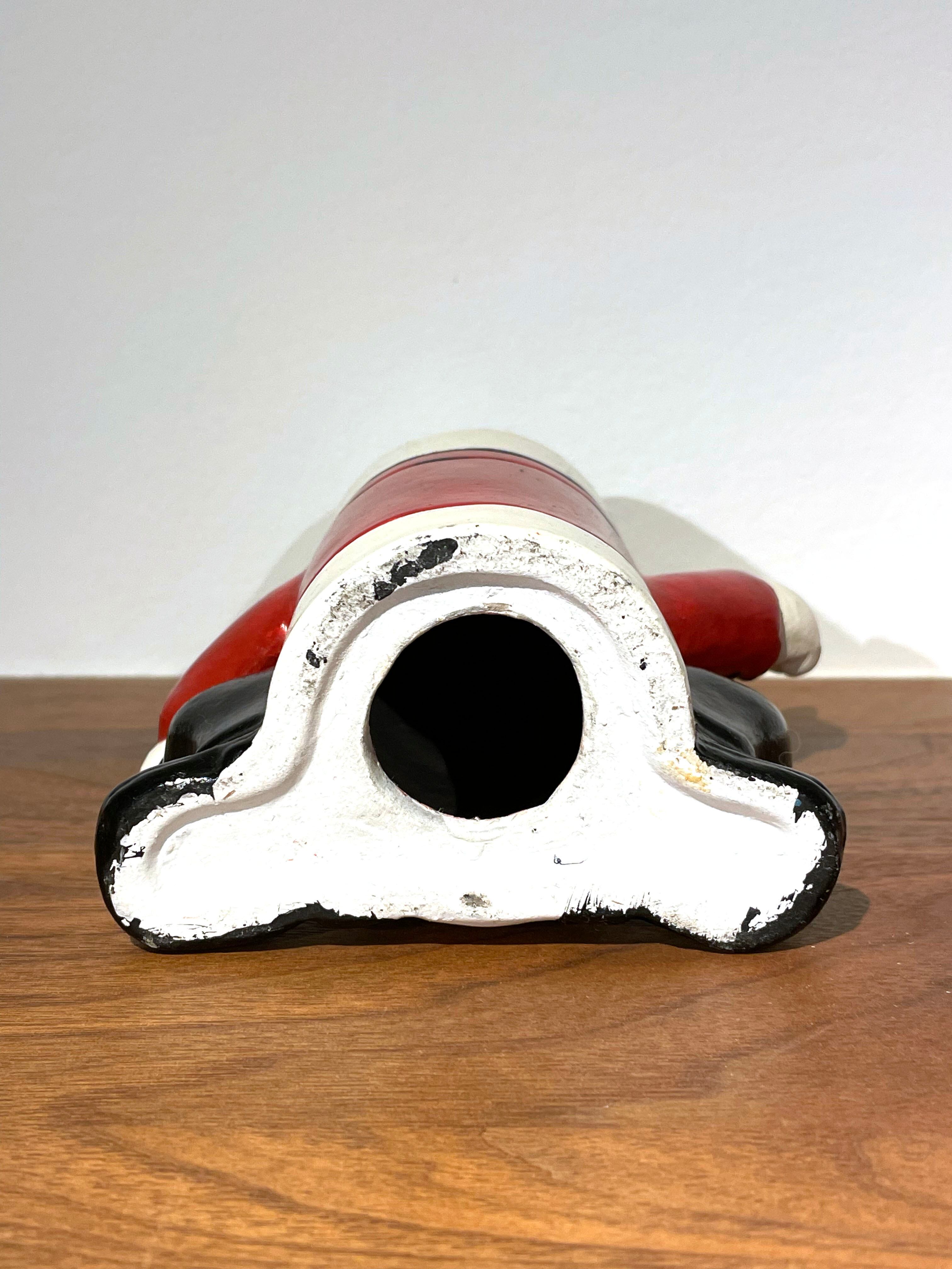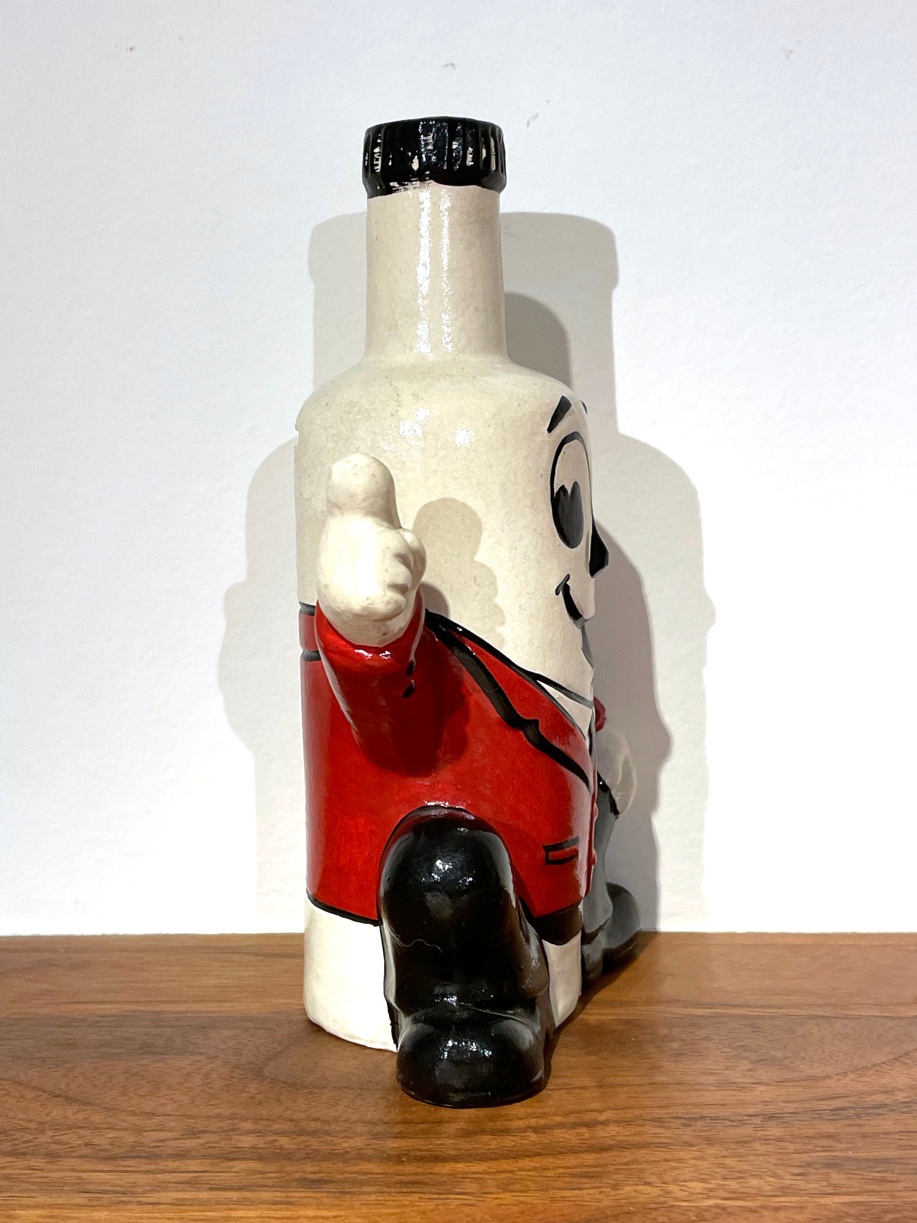 アメリカのアルコール飲料フォアモストのキャラクター貯金箱です。高さは約18.5センチ程度。紙張り子的な材質ですが、しっかりと重量があります。古いモノにしては良いコンディションです。底の蓋が欠損してます。70年代くらいのものでしょうか。