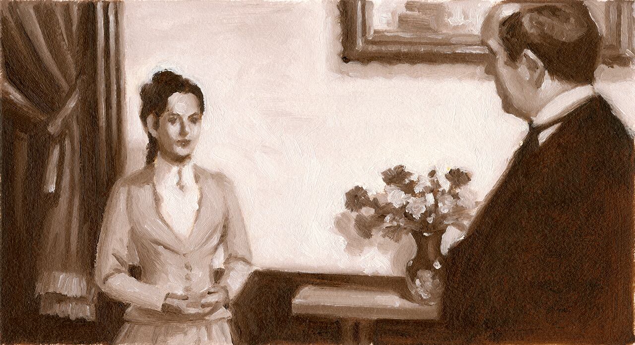 NHKラジオ英会話のテキスト用に描いたシャーロック・ホームズの挿絵原画です。アルシュという用紙にジェッソ、油彩で、サイズは約28センチx15センチです。画像をスキャンした時にはサインが入っていませんでしたが、原画には油彩直筆でサインを入れてあります。